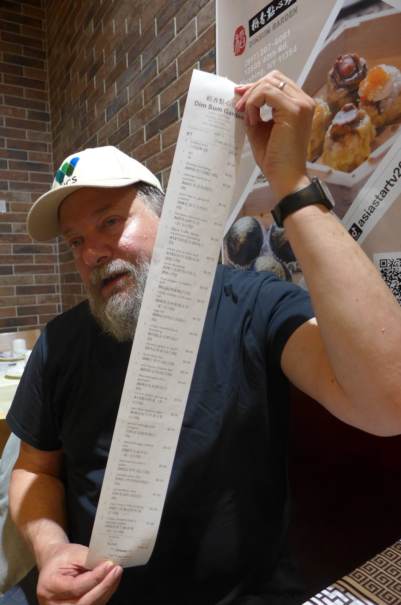 Altogether, we ordered 30 plates in two rounds, comprising nearly 100 individual items. We could barely finish to avoid the penalty. We hid partly-eaten turnip cakes under a leaf leftover from a plate of steamed lettuce, and the staff kindly ignored it. Note that several selections on the menu represent entire plates or bowls of food, so you may want to stick with the dumpling-type dishes to try the maximum number of things.